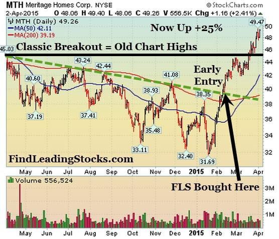 MTH: +25% Since Entry. Great example of how our early entry signals work! & when they don’t – you’re out for a VERY small low single digit loss